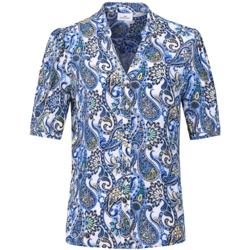 * Regular fit blouse in viscose met een allover print * 3/4 mouwlengte * Patten met knoopsluiting aan de voorkant * Kleine plooien bij de manchet en bovenkant van de mouw * Kleine manchet met knoopsluiting * Merkmetalplaat aan de voorkant 100% viscose