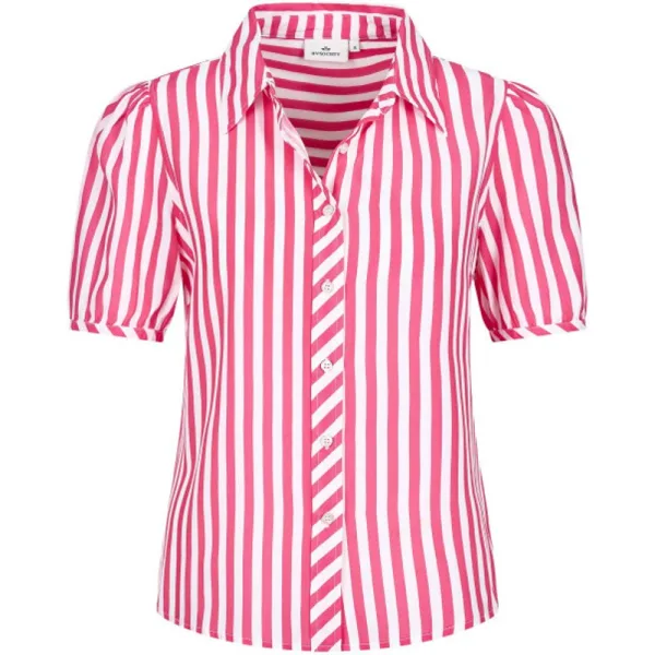 * Blouse met normale pasvorm * Viscose met 2 kleuren strepen * Korte pofmouw, met kleine manchet en knoop * Knoopsluiting met diagonaal uitgesneden knopenlijst * Metalen logoplaat aan de voorkant 60% rayon 40% viscose
