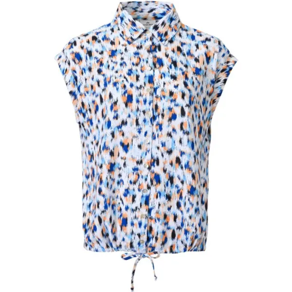 Linnen mix blouse met een kleurrijke all-over print * Mouwen met omslagboord * Knoopsluiting aan de voorkant * Metalen merkplaatje aan de achterkant * Onderboord met koord om de zoom aan te passen 70% viscose 30% linen