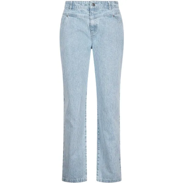 * 5-pocketmodel * Spijkerstof met klein blauw/wit streeppatroon * Voor- en achterpas voor mooie vorm * Branded jeans knoopsluiting met rits * Branded rivet op alle zakken * Strass rivet op voorzakken * Geborduurd artwork op de tailleband aan de achterkant * Riemlussen bij tailleband 99% cotton 1% elastan
