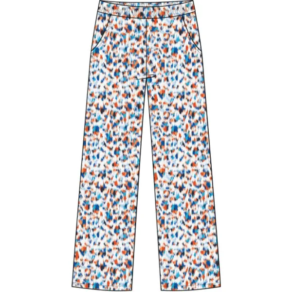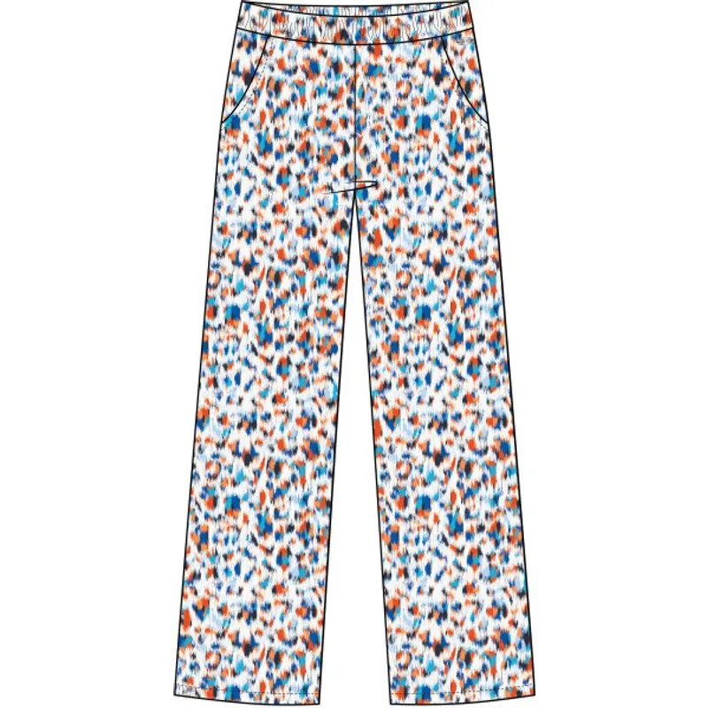 Linnen mix broek met een kleurrijk all-over printje of in blauw Indigo * Elastische tailleband * Merkplaatje 70% viscose 30% linen