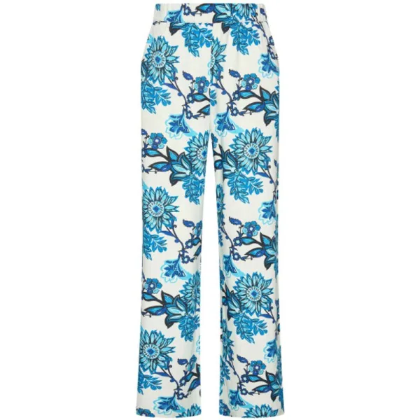Linnen mix broek met een kleurrijk all-over printje of in blauw Indigo * Elastische tailleband * Merkplaatje 70% viscose 30% linen