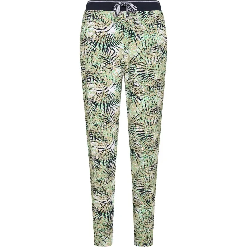 Broek van stretch jersey met all-over print. Met contrasterende tape aan de zijkanten. Geribbelde tailleband met contrasterende strepen. De tailleband is verstelbaar door middel van een gestreept koord met metalen uiteinden. 2 steekzakken aan de voorkant. Metalen logoplaatje aan de voorkant en marineblauw geborduurd logo op de achterkant. 95% viscose 5% elasthan