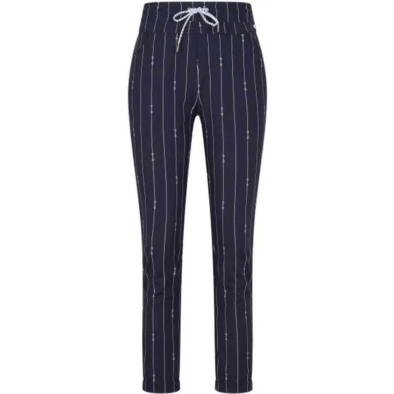 * Slim fit broek in stretchy travel kwaliteit * Tailleband van zelfstof met elastiek aan de binnenkant * Logokoord met metalen koorduiteinden om de taille aan te passen * 2 Steekzakken vooraan * 2 Fake zakken aan de achterkant * Metalen logo plaatje aan de voorkant 75% polyamide 25% elasthan