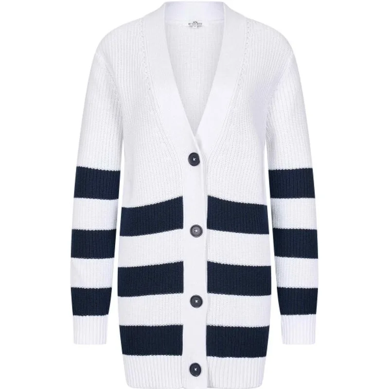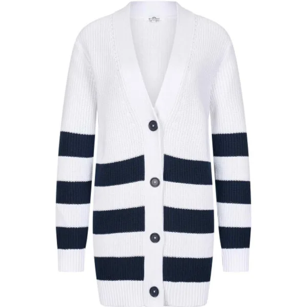 * Vest met lange mouwen * Gestreepte gebreide katoen acryl mix * Effen rib aan de onderkant, de manchetten, halslijn en knopenlijst * V-vormige halslijn * Pointelle-halslijn aan de voorkant * Knoopsluiting aan de voorkant * Metalen logo plaatje aan de voorkant 50% cotton 50% polyacrylic