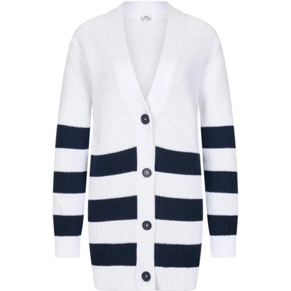 * Vest met lange mouwen * Gestreepte gebreide katoen acryl mix * Effen rib aan de onderkant, de manchetten, halslijn en knopenlijst * V-vormige halslijn * Pointelle-halslijn aan de voorkant * Knoopsluiting aan de voorkant * Metalen logo plaatje aan de voorkant 50% cotton 50% polyacrylic