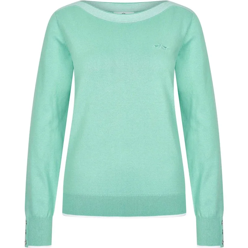 * Trui met lange mouwen * Effen gebreide mix van katoen en polyamide * Rib aan de zoom en manchetten, met een smalle contrastkleurige rand * Bootvormige halslijn met contraststrepen * Nep sluiting bij manchet met 3 metalen knopen * Geborduurd logo op de borst * Metalen logo plaatje aan de voorkant 80% Cotton 18% polyamide 2% elastane
