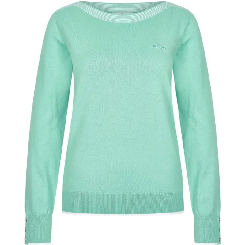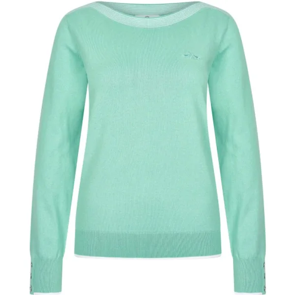 * Trui met lange mouwen * Effen gebreide mix van katoen en polyamide * Rib aan de zoom en manchetten, met een smalle contrastkleurige rand * Bootvormige halslijn met contraststrepen * Nep sluiting bij manchet met 3 metalen knopen * Geborduurd logo op de borst * Metalen logo plaatje aan de voorkant 80% Cotton 18% polyamide 2% elastane