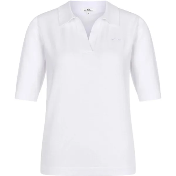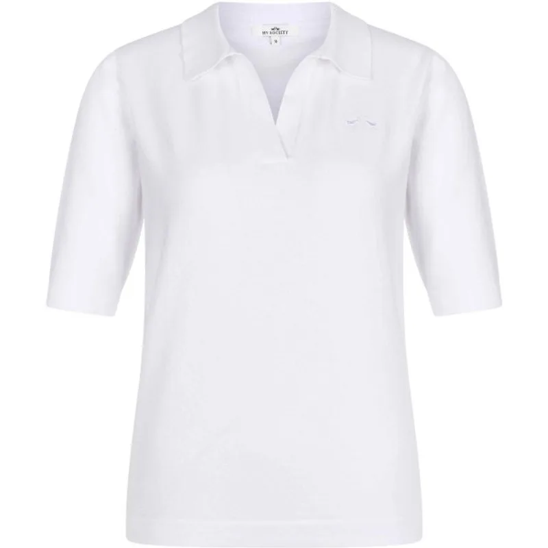 * Trui met halflange mouwen * Effen gebreide mix van katoen en polyamide * V-vormige halslijn met polokraag * Geborduurd logo op de borst * Metalen logo plaatje aan de voorkant 80% Cotton 18% polyamide 2% elastane