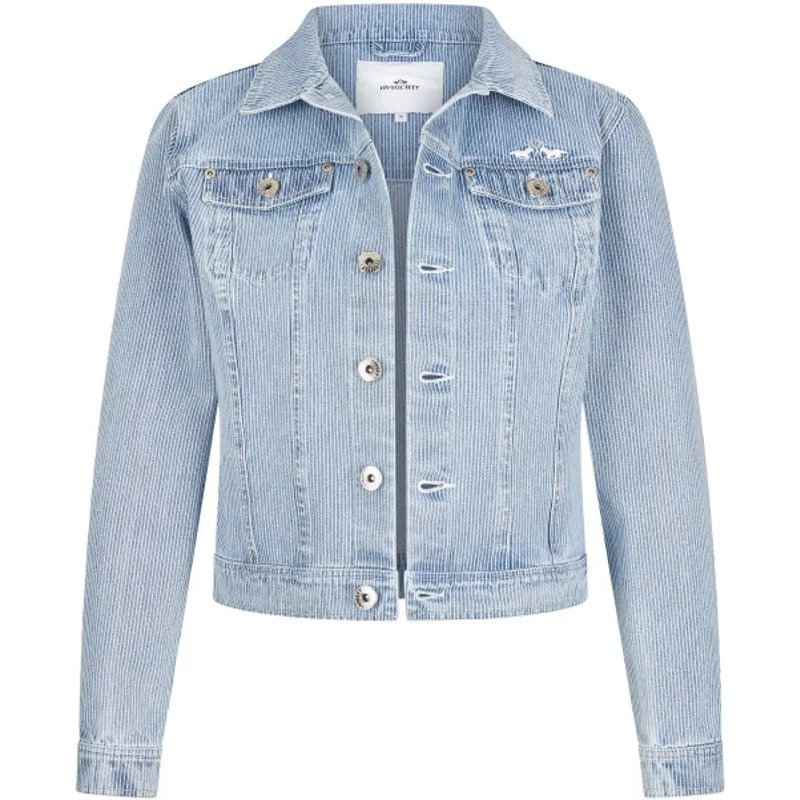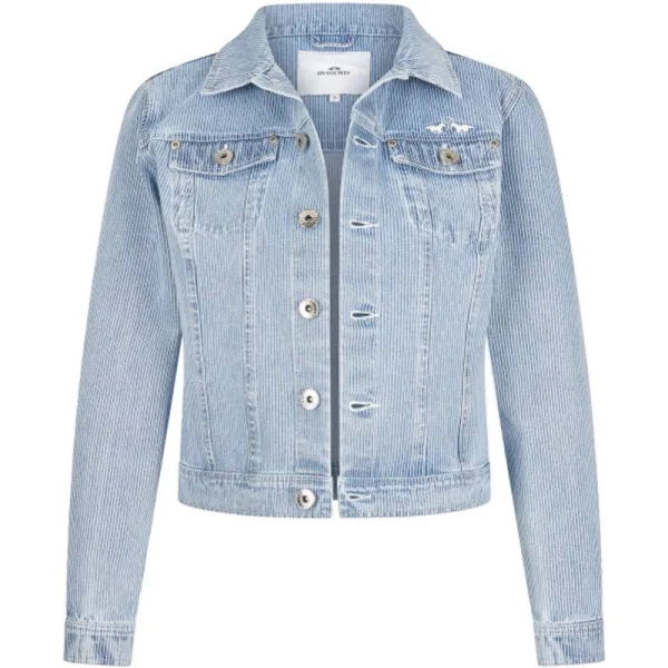 * Comfortabel spijkerjack met stretch in een zeer vrouwelijke vorm * Spijkerstof met klein blauw/wit streeppatroon * Branded jeans knoopsluiting * Twee borstzakken met kleppen * Verstelbare tailleband * Geborduurd logo op de borst 99% cotton 1% elastan