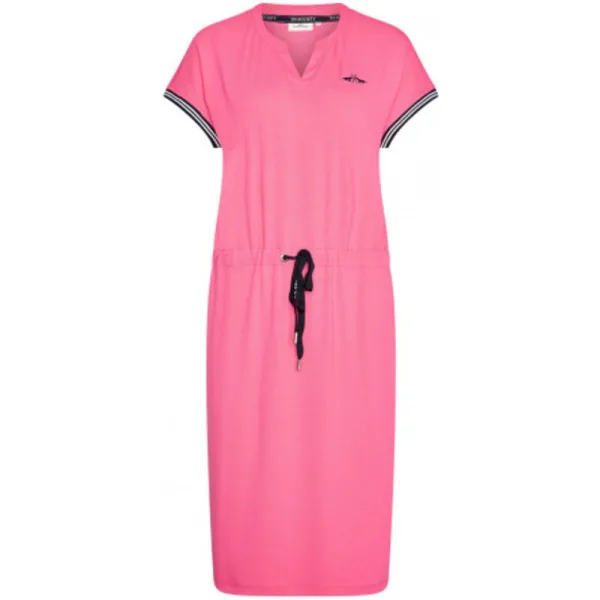 Wijde jurk van viscosejersey * Korte mouwen met snit * Geribbelde manchetten met contraststrepen * Koord met logo-artwork in tailletunnel voor tailleverstelling * Geborduurd paardenlogo op de borst 96% viscose 4% elastan