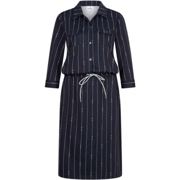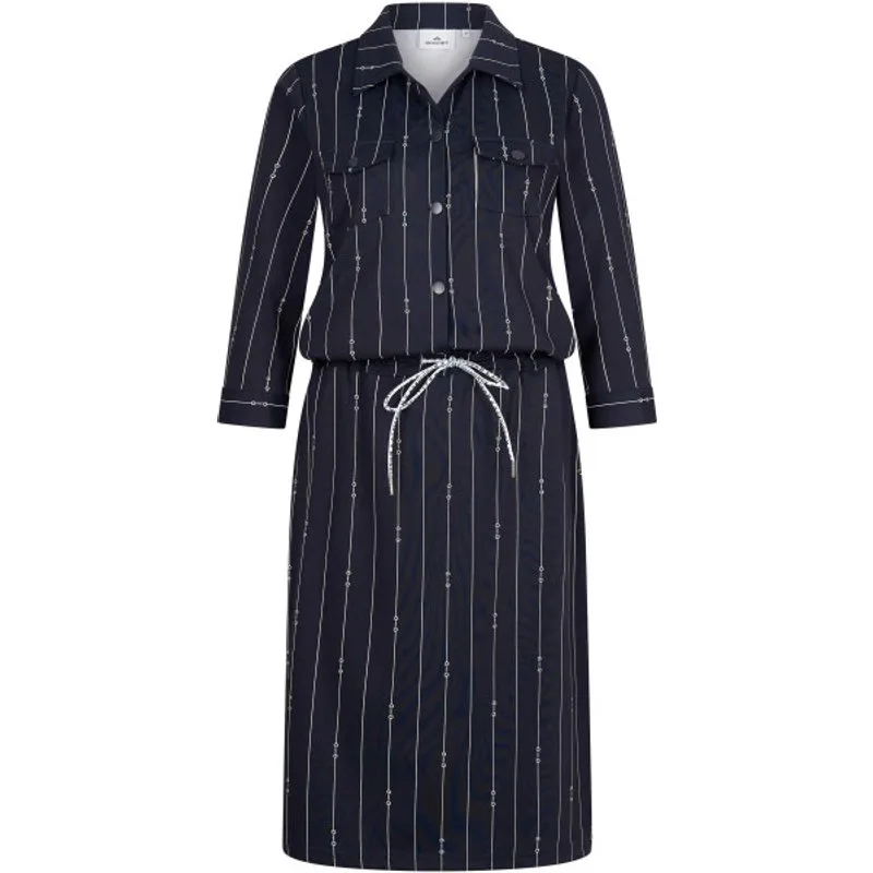 * Halflange jurk in stretchy effen en gestreepte travel kwaliteit * Opgestikte zakken met klep op de borst * Fancy logokoord voor verstelbare taille * Knopenlijst * 3/4 mouw met oprolfunctie * Metalen logo plaatje aan de voorkant 75% polyamide 25% elastan
