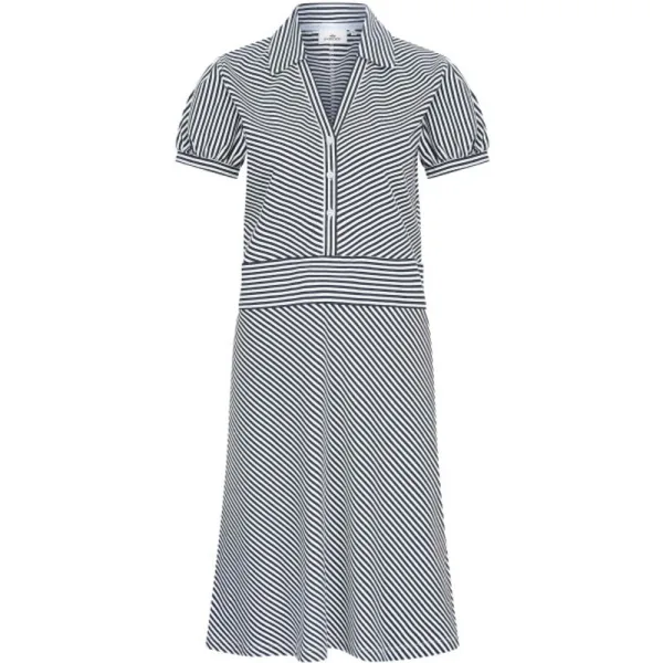 "Upgrade je garderobe met onze prachtige stretch jersey jurk. Dit verfijnde stuk heeft een klassieke overhemdkraag en V-hals met een chique kleine knoopsluiting. De licht opgeblazen korte mouwen voegen een vleugje charme toe, terwijl de merk-metalen plaat aan de voorkant een vleugje luxe toevoegt. Perfect voor elke gelegenheid, deze jurk is een must-have toevoeging aan je collectie. Upgrade je stijl vandaag met onze stretch jersey jurk." 95% cotton 5% elastane