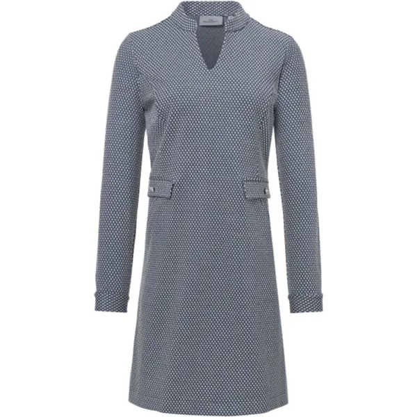 "Upgrade je garderobe met ons nieuwste must-have item: de jurk met jacquard patroon over de hele stof. Dit prachtige item heeft lange mouwen met manchetten voor een verfijnde touch. De voorste insteekzakken zijn zowel stijlvol als functioneel, terwijl de nep paspelzak een trendy detail toevoegt. Compleet met een merken metalen plaatje aan de achterkant van de nek, deze jurk zal zeker de aandacht trekken waar je ook gaat. Upgrade je look met deze elegante en stijlvolle jurk vandaag nog!" 82% polyester 14% viscose 4% elastan