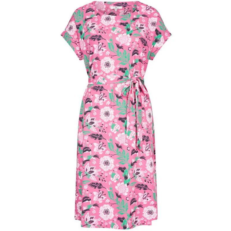 "Vergroot je reisstijl met onze chique losvallende jurk gemaakt van reiskwaliteit stof. Deze jurk heeft een modern ontwerp met aangeknipte korte mouwen en een flatterende ronde halslijn. De bijgeleverde riem, met een klein en stijlvol artwork langs de rand, kan worden aangesnoerd bij de taille voor een persoonlijke pasvorm. Het merkplaatje aan de achterkant van de nek voegt een vleugje luxe toe aan dit veelzijdige kledingstuk. Bovendien, met handige insteekzakken in de zijnaad, kun je je essentiële spullen dicht bij de hand houden terwijl je onderweg bent. Zie er moeiteloos stijlvol en comfortabel uit, waar je avonturen je ook brengen, in onze reisklare jurk." 75% polyamide 25% elastane