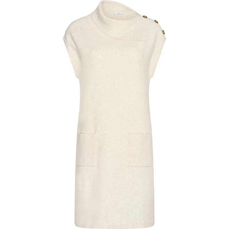 Gebreide mouwloze jurk * Hoge ribgebreide hals * Hals open aan zijkant * Knoopdetail op schouder * 2 opgestikte zakken aan voorkant * Zijsplitten aan zoom * Metalen logoplaatje op achterkant 33% cotton 26% polyacrylic 23% polyamide 10% bamboo 5% wool 3% elastane