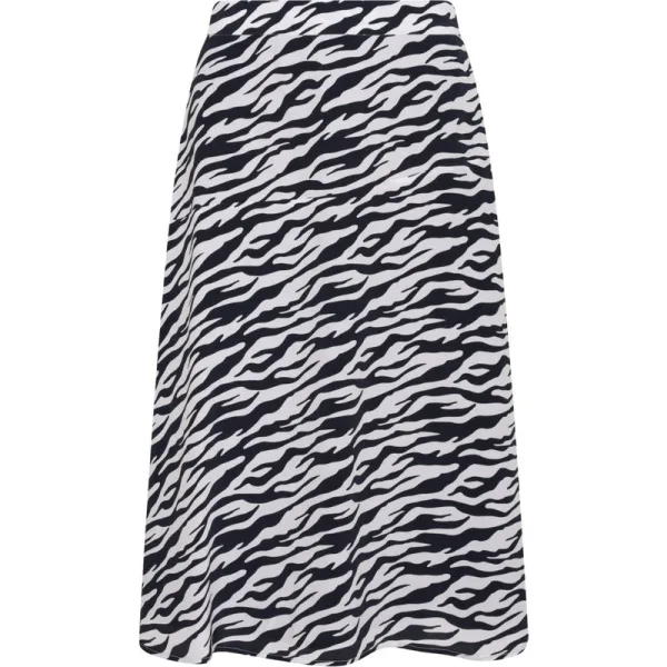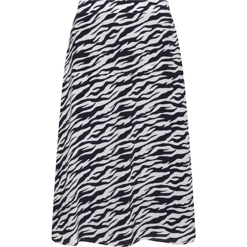 Lange uitlopende rok van viscose met trendy alloverprint. De tailleband heeft een elastiek aan de achterkant voor extra comfort. Met blinde ritssluiting midden op de achterkant. De rok is half gevoerd. 100% viscose