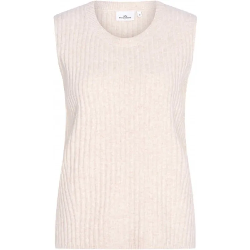 Gebreide mouwloze pullover * Ronde halslijn * Knoopdetail op schouder * Metalen badge op voorkant 33% cotton 26% polyacrylic 23% polyamide 10% bamboo 5% wool 3% elastane