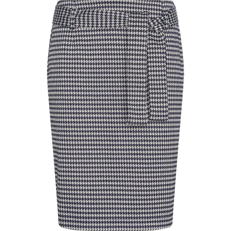 Rok, korte lengte * Pied de poule print * Riem van dezelfde stof in de taille * Ritssluiting middenachter 51% polyester 32%rayon 15%slurex yarn 2%spandex