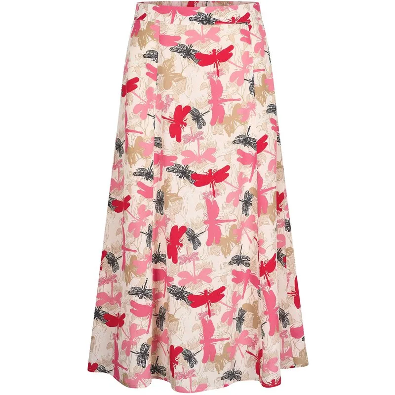 * Lange wijde rok * Bedrukte viscose * Gevoerd * Tailleband met elastiek binnenin de achterkant voor meer comfort * Blinde ritssluiting aan de linkerkant van de drager * Metalen logo plaatje aan de voorkant 100% viscose