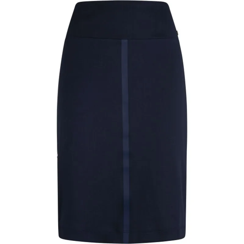 Rok gemaakt van sportief, technisch stretch polyester met ademend vermogen, met contrasterende zijpanelen, hoge tailleband en fashionable streep in het midden aan de voorzijde, metalen logoplaatje