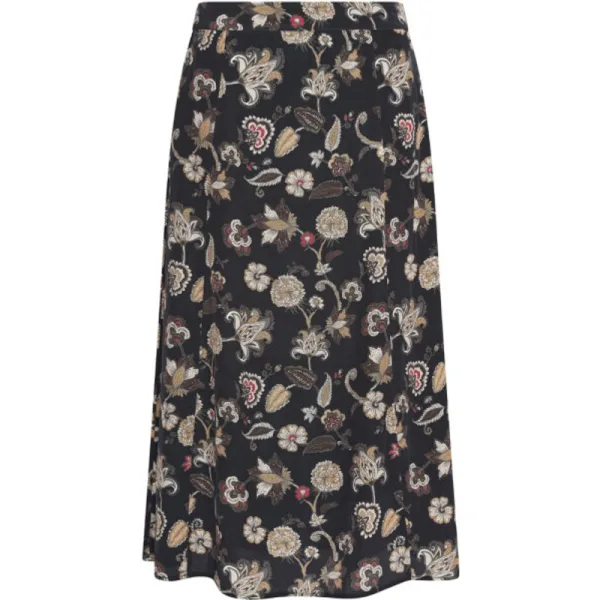 Lange uitlopende rok * Bedrukte viscose * Gevoerd * Tailleband van shell-stof met elastische binnenkant aan de achterkant voor meer comfort * Blinde ritssluiting aan de linkerkant * Metalen logoplaatje aan de voorkant 100% Viscose