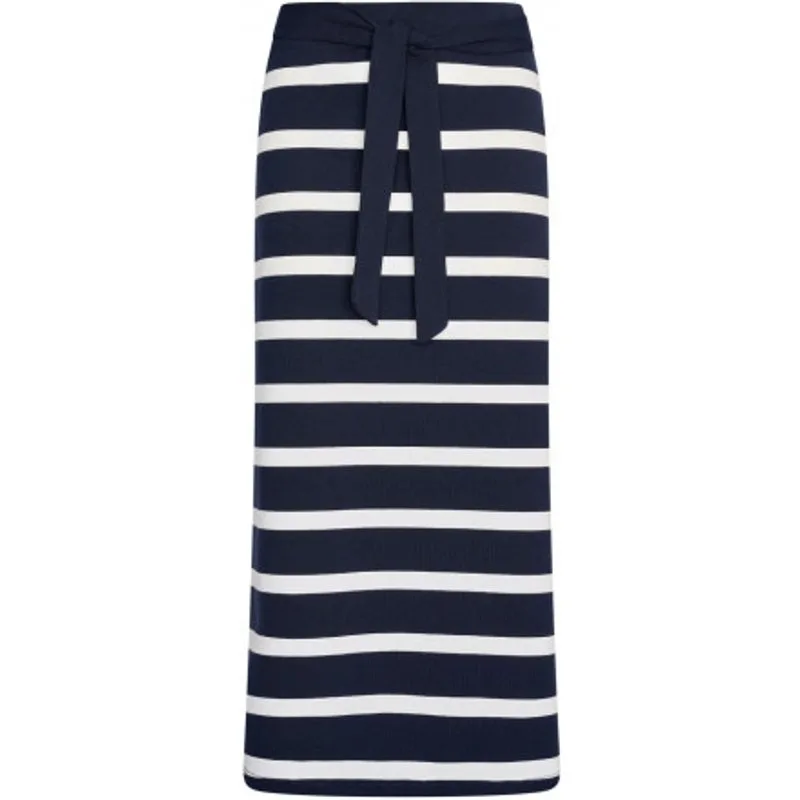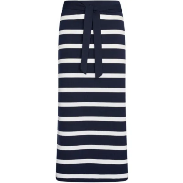 Gestreepte midi-rok van stretchkatoenjersey, de tailleband is elastisch aan de achterkant, de riem is vastgemaakt aan de zijnaden om aan de voorkant te strikken met een logo op het uiteinde van de riem. 95% cotton 5% elastan