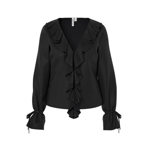 De HYPEDROP Hdadele ruffle tie top is een zwarte blouse die meteen opvalt door de fijne details. De rechte pasvorm valt soepel langs het lichaam en de trompetmouwen met ruches geven een luchtig effect. De V-hals met striksluiting bij de hals zorgt voor een verzorgde uitstraling, terwijl het effen zwart deze top makkelijk combineerbaar maakt met jouw favoriete broeken en rokken.Verfijnde details in tijdloos zwart Zwarte blousetop met rechte pasvorm voor een vallend silhouet V-hals met subtiel strikje bij de hals voor een vrouwelijke look Trompetmouwen met ruches die zorgen voor een zwierige beweging Effen ontwerp dat eenvoudig te stylen is voor werk en vrije tijd Gemaakt van een soepel vallende stof die licht aanvoelt Geen sluiting, je trekt de blouse eenvoudig over het hoofd aan Maatadvies: dit artikel valt normaal Geschikt voor het lenteseizoen en het hele jaar door te dragen in laagjes Onderhoud: handwas, niet strijken, niet drogen in de droogtrommelVan werkdag tot dinerDeze top past goed bij een nette pantalon op kantoor of een zwarte skinny jeans voor een avond uit. Door de rustige kleur en de verfijnde details kleed je gemakkelijk op of af met sieraden en een tas. Handig als je met één blouse meerdere outfits wilt creëren.HYPEDROP stijlvol in het dagelijks levenHYPEDROP ontwerpt mode die aansluit bij een moderne, vrouwelijke stijl. De focus ligt op draagbare items met doordachte details, zodat je je elke dag verzorgd voelt. Met deze blouse haal je een basisstuk met moderne details in huis.Een veelzijdige zwarte top die jouw garderobe op een subtiele manier compleet maakt.