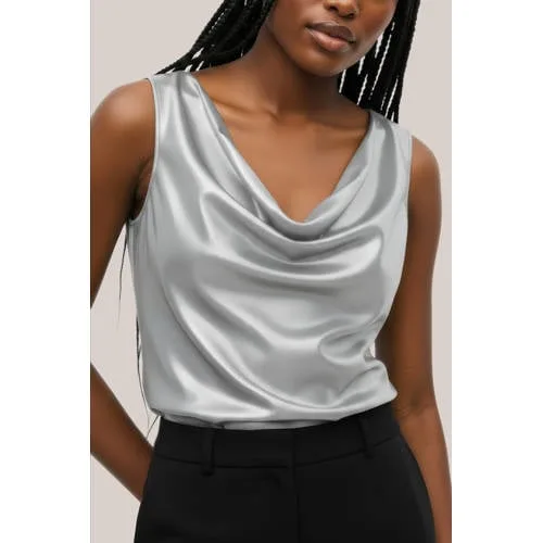 Deze HYPEDROP top is mouwloos en heeft een watervalhals. De stof is glimmend en valt soepel, rechte mouwen geven een makkelijke look, de kleur maakt combineren eenvoudig.