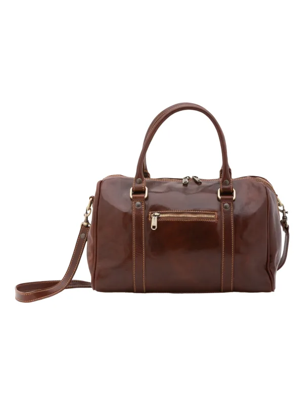 Bowlertas voor dames met ritssluiting. één met binnenzakken met ritssluiting. één achterkant met externe zakken met ritssluiting. afneembare lederen schouderband. met leren handvat. een binnencompartiment. extern materiaal. gevoerd met katoenen binnenkant. Afmetingen: 37x22x16 cm. Gemaakt in Italië