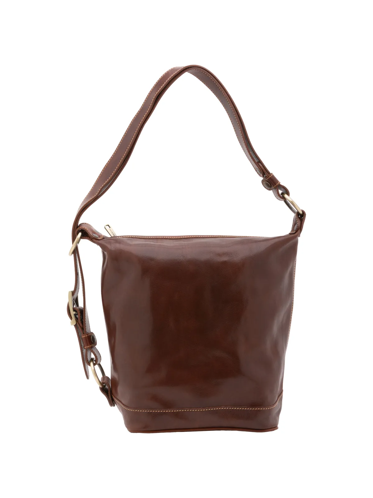 Dames bucketbag met ritssluiting. één met binnenzakken met ritssluiting. afwezige externe zakken. verstelbaar in lederen schouderband. ontbrekend handvat. een binnencompartiment. extern materiaal. gevoerd met katoenen binnenkant. Afmetingen: 34x33x15 cm. Gemaakt in Italië