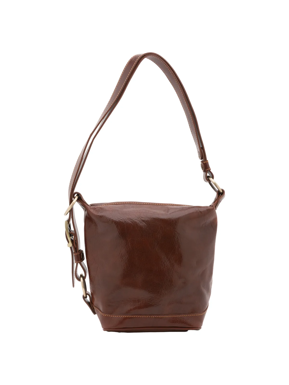 Dames bucketbag met ritssluiting. één met binnenzakken met ritssluiting. afwezige externe zakken. verstelbaar in lederen schouderband. ontbrekend handvat. een binnencompartiment. extern materiaal. gevoerd met katoenen binnenkant. Afmetingen: 25x28x14 cm. Gemaakt in Italië