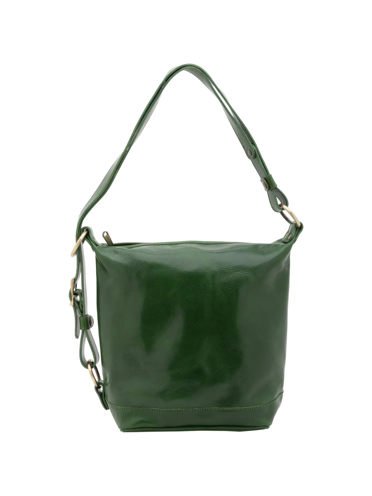 Dames bucketbag met ritssluiting. één met binnenzakken met ritssluiting. afwezige externe zakken. verstelbaar in lederen schouderband. ontbrekend handvat. een binnencompartiment. extern materiaal. gevoerd met katoenen binnenkant. Afmetingen: 34x33x15 cm. Gemaakt in Italië