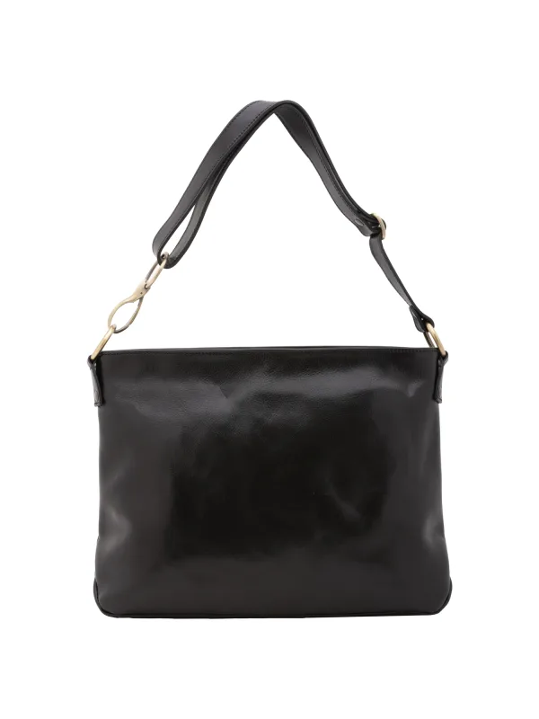 Damesschoudertas met ritssluiting. twee met binnenzakken met ritssluiting. afwezige externe zakken. verstelbaar in lederen schouderband. ontbrekend handvat. twee binnenvakken. extern materiaal. gevoerd met katoenen binnenkant. Afmetingen: 38x29x11 cm. Gemaakt in Italië