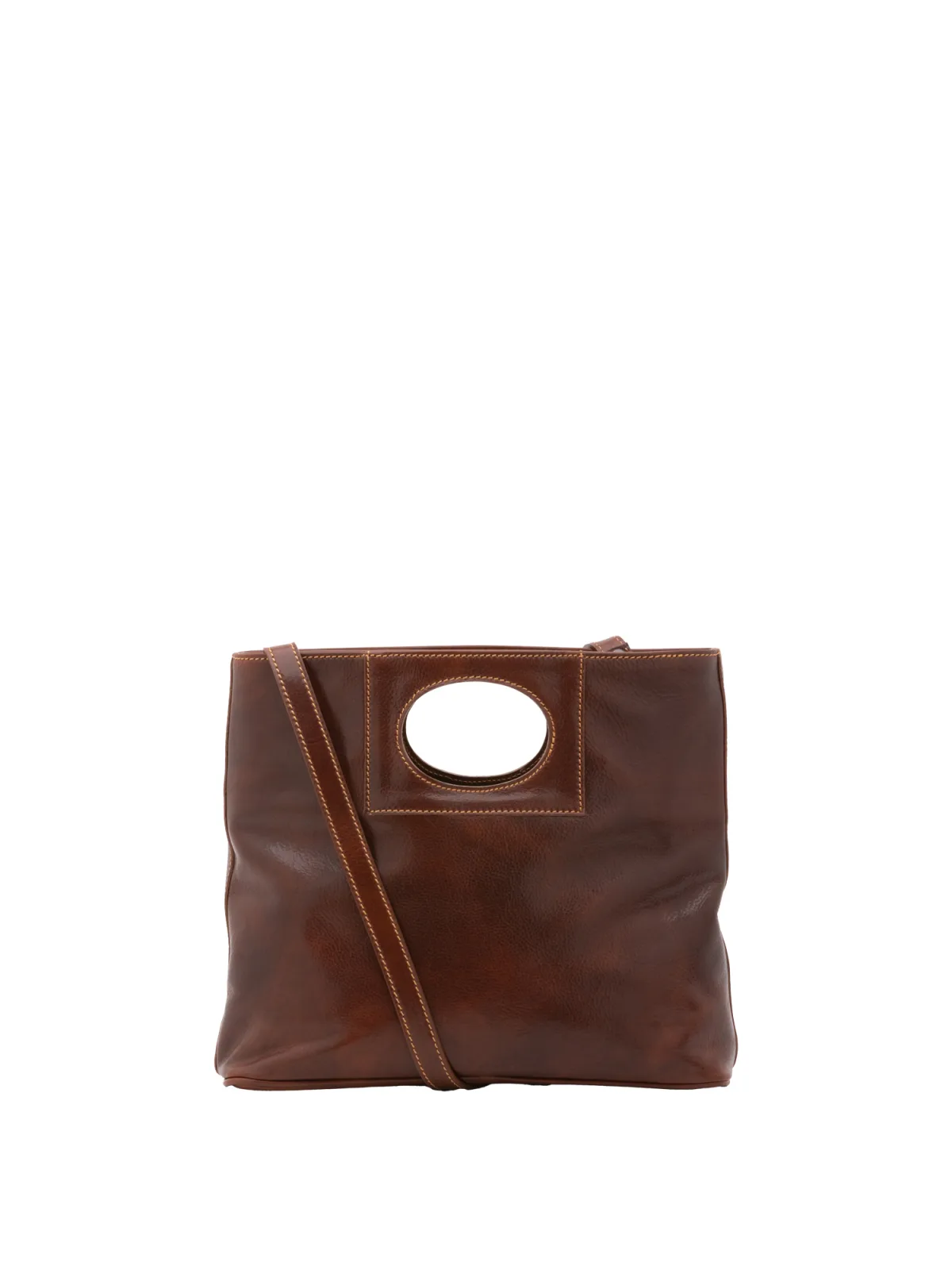 Crossbodytas voor dames met magneetsluiting. één met ritssluiting en twee open binnenzakken. afwezige externe zakken. afneembare lederen schouderband. met leren handvat. twee binnenvakken. extern materiaal. gevoerd met katoenen binnenkant. Afmetingen: 28x33x10 cm. Gemaakt in Italië