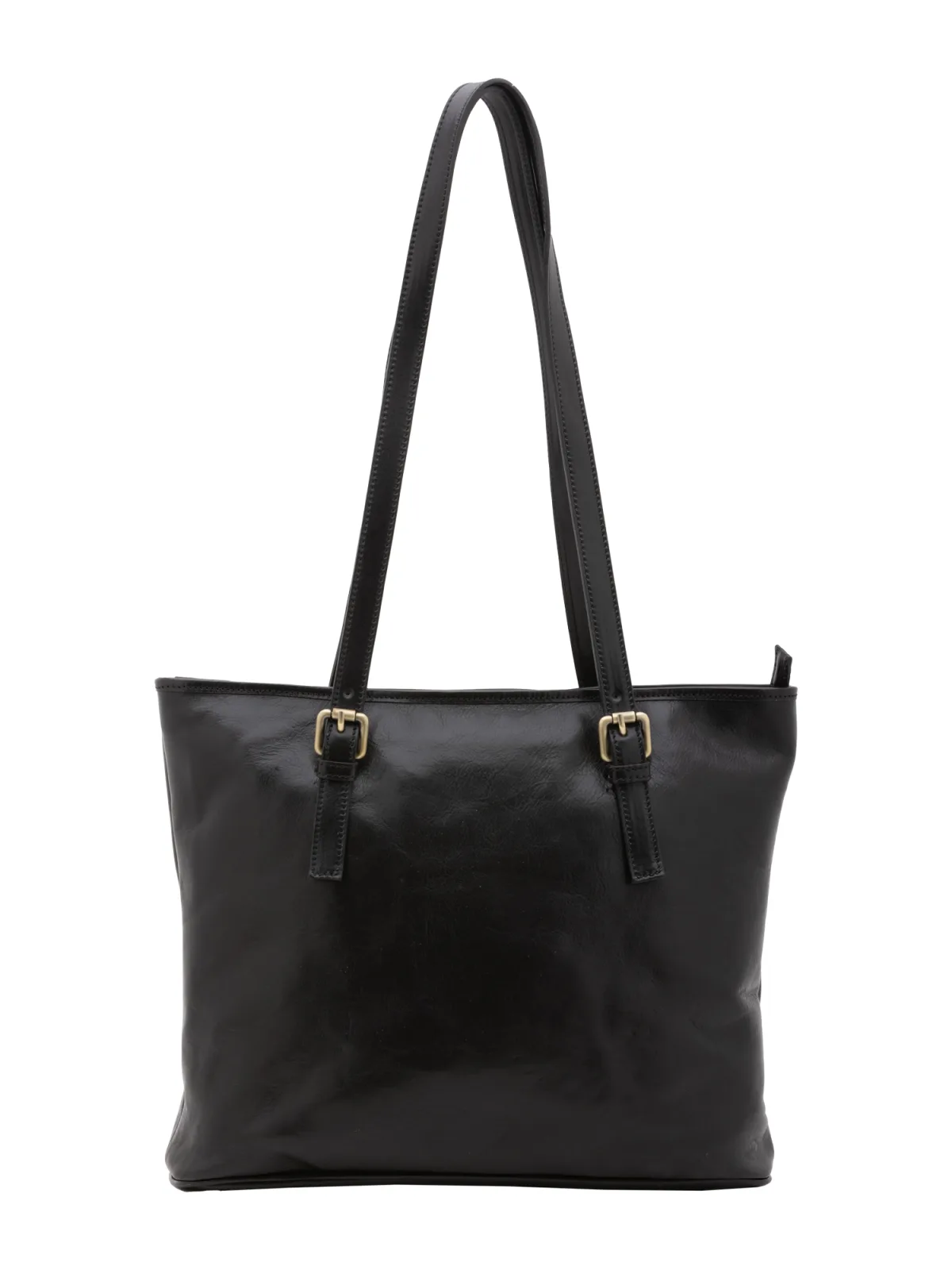Damesschoudertas met ritssluiting. twee rits- en twee open binnenzakken. één achterkant met externe zakken met ritssluiting. ontbrekende schouderband. met leren handvat. twee binnenvakken. extern materiaal. gevoerd met katoenen binnenkant. Afmetingen: 31x41x10 cm. Gemaakt in Italië