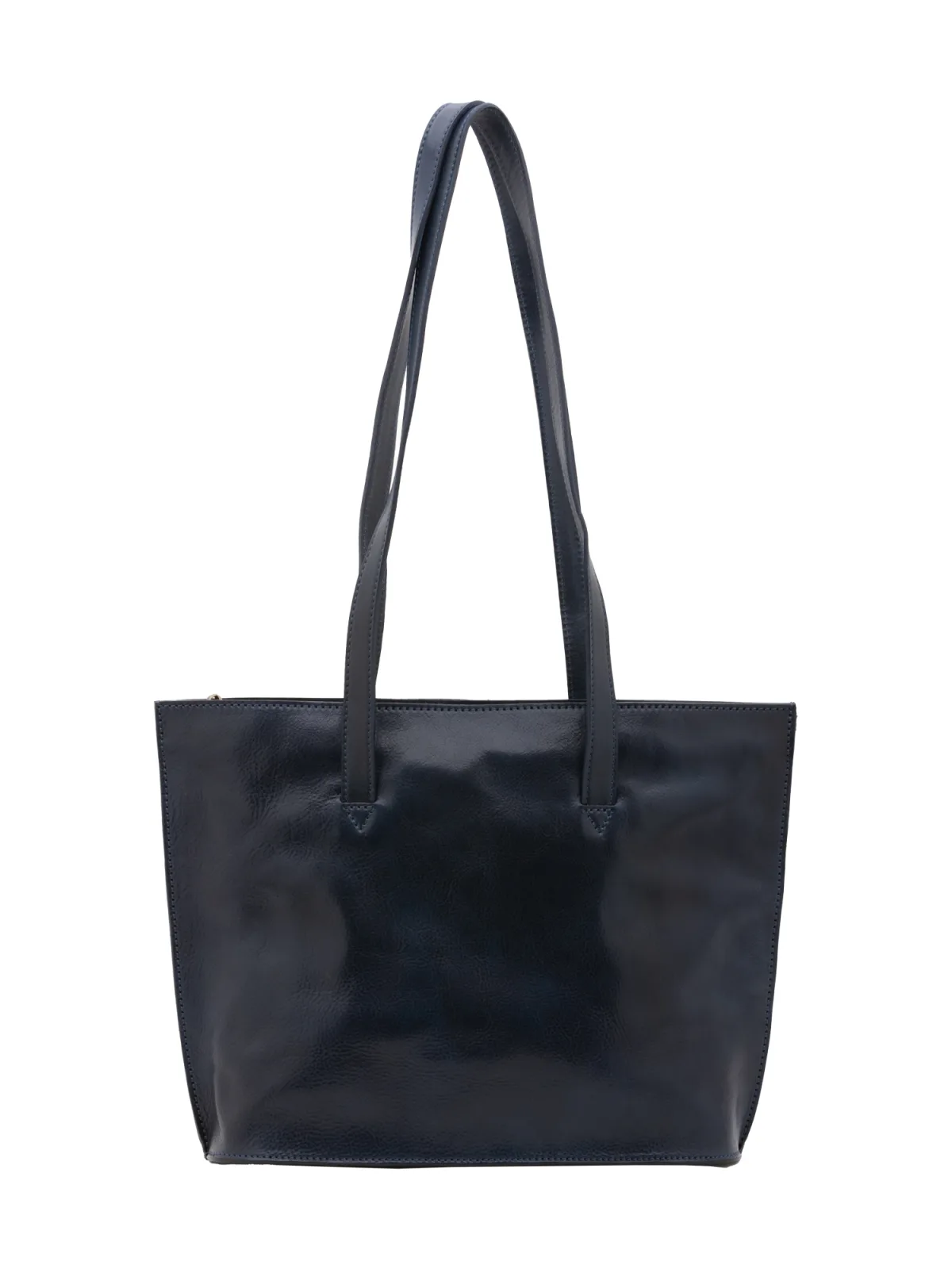 Damesschoudertas met ritssluiting. één met ritssluiting en twee open binnenzakken. één achterkant met externe zakken met ritssluiting. ontbrekende schouderband. met leren handvat. een binnencompartiment. extern materiaal. gevoerd met katoenen binnenkant. Afmetingen: 27x38,5x10 cm. Gemaakt in Italië