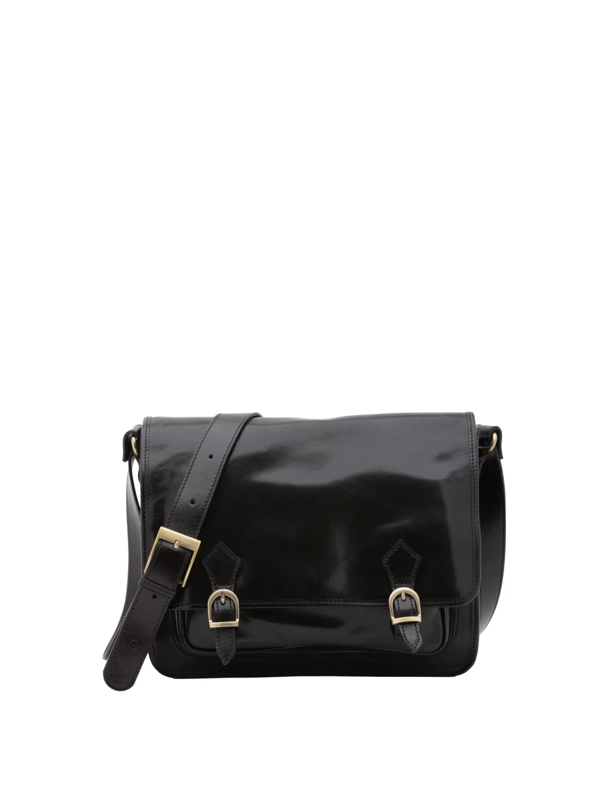 Crossbodytas voor dames met magneetsluiting. één met ritssluiting en één open binnenzak. één voorkant met ritssluiting en één achterkant met externe zakken met rits. verstelbaar in lederen schouderband. ontbrekend handvat. twee binnenvakken. extern materiaal. gevoerd met katoenen binnenkant. Afmetingen: 35x27x14 cm. Gemaakt in Italië
