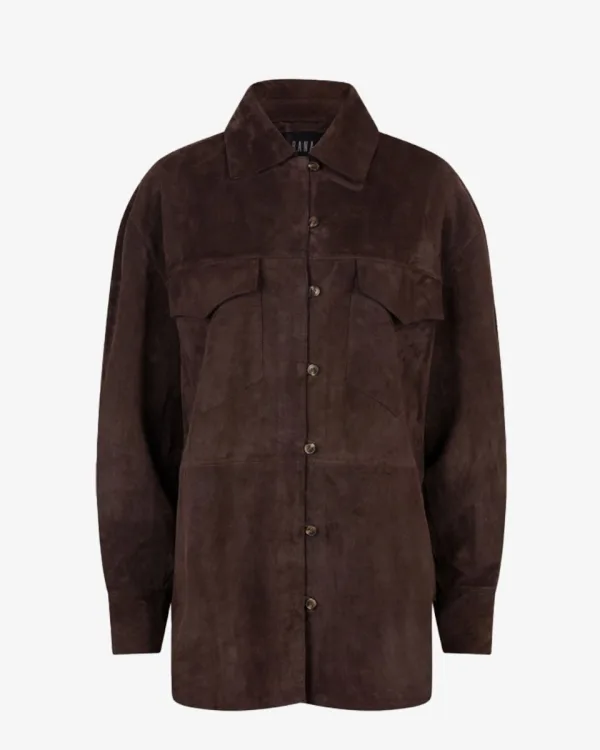 Tijdloze klasse in suède: de Bodi damesblouse van Ibana is uitgevoerd in zacht suède in een diepe donkerbruine tint. De rechte fit en klassieke kraag zorgen voor een elegante basis, terwijl de borstzakken een stoer accent toevoegen. Dankzij het soepele materiaal voelt de blouse luxe en comfortabel aan. Kleur: donkerbruin. (Coffee