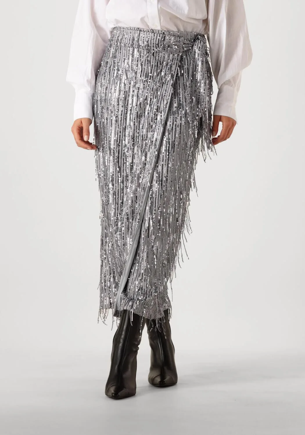 Voeg een vleugje glamour toe aan je garderobe met de grijs kleurige midirok SIERA van IBANA. Deze rok met zilverkleurige pailletten is gemaakt van polyester, is perfect voor een avondje uit of een chique diner. De elegante kleur en het knoopdetail laten je stralen en maakt het eenvoudig om te combineren met een zwarte blouse of een stijlvolle blazer. De comfortabele polyester voering zorgt ervoor dat je je de hele avond op je gemak voelt. Of je nu de dansvloer op gaat of geniet van een verfijnde maaltijd, met de SIERA rok ben je altijd stijlvol en zelfverzekerd.