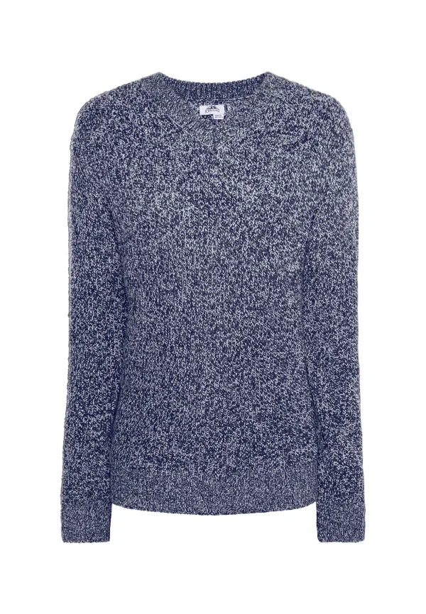 Sportief breiwerk van ICEBOUND. De zachte trui is gebreid van zacht garen en valt op door zijn brede ribbreisel in tweekleurige gemêleerde look. De klassieke pasvorm wordt aangevuld met een V-hals en de laatste geribde manchetten. Jumper