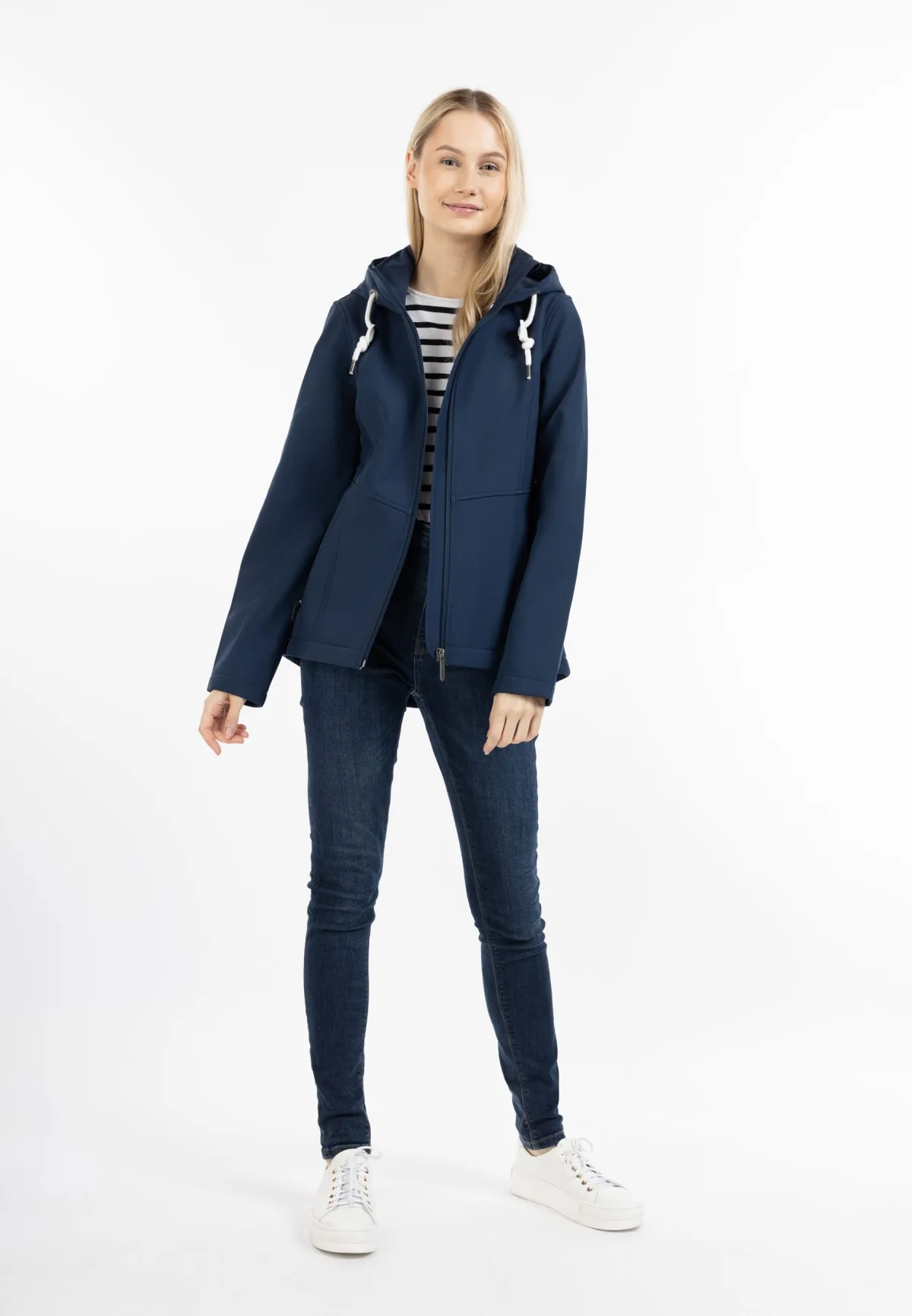 Geen vulling Het chique, licht getailleerde softshelljack van ICEBOUND maakt zijn claim op innovatieve bovenkleding ruimschoots waar. Het softshell-materiaal is wind- en waterdicht en heeft een zachte fleece-binnenkant die voor behaaglijke warmte zorgt. De grote, beschermende capuchon met trekkoord en stijlvol koord en de opstaande kraag houden kou en wind buiten. Drukknopen met logogravure, contrasterende oogjes en hoogwaardig logoborduurwerk zorgen voor een karakteristieke uitstraling. Het chique tussenjasje wordt gecompleteerd door de zijzakken met drukknopen en het verlengde rugpand met afgeronde zoom. softshell jas