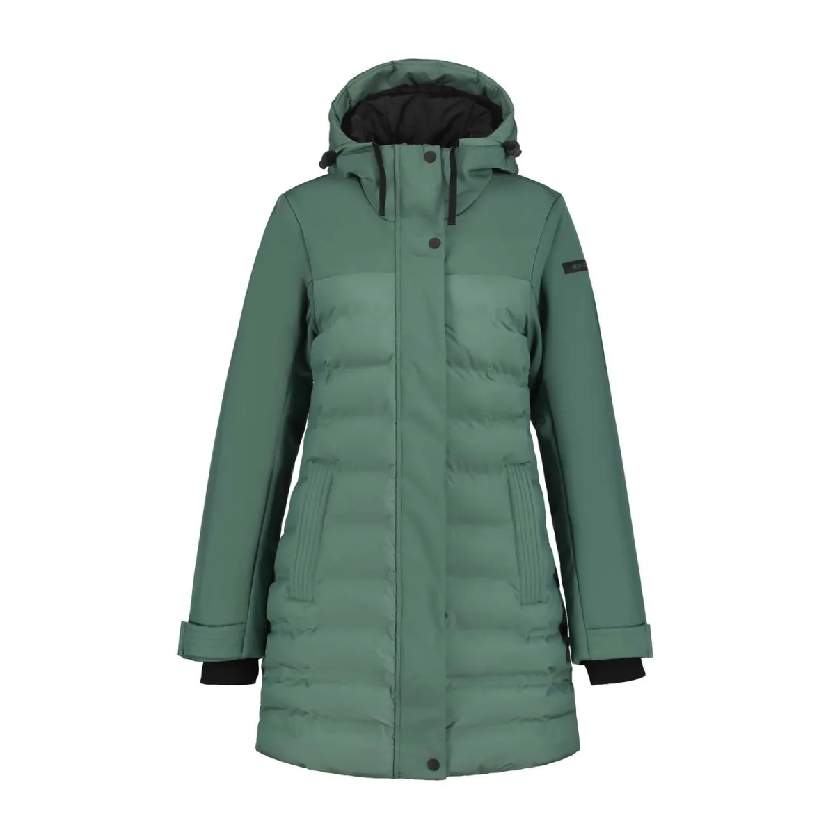 De Icepeak donslook jas voor dames combineert stijl met functionaliteit. Dankzij de verstelbare capuchon, elastische manchetten en waterafstotende afwerking ben je beschermd tegen wind en regen. De lichte donsimitatie vulling zorgt voor warme isolatie zonder zwaar aan te voelen. Het gebruik van gerecycled REPREVE®-polyester maakt de jas bovendien een duurzame keuze. Geschikt voor zowel actieve buitenactiviteiten als casual dagelijks gebruik.