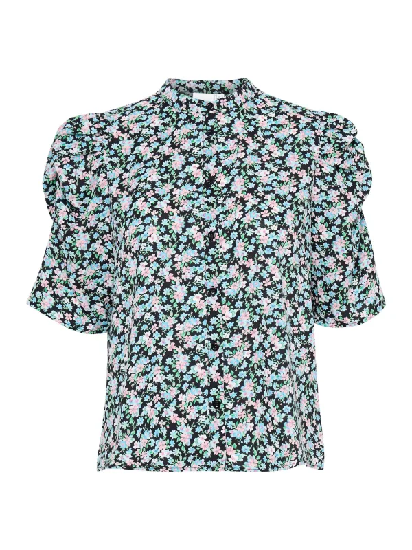 Blouse type: Klassieke blouse; Design: Gevoerde zoom/rand, Knop placket; Type sluiting: Knoopsluiting; Motief: Bloemenprint; Kraag: Opstaande kraag; Details: Gedrapeerd; Extra's: All-over patroon; Pasvorm: Normale pasvorm; Armlengte: Halve mouw; Lengte: Normale lengte