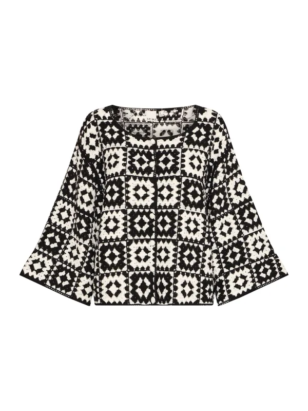 ICHI Gebreid vest ‘Bandie’ beige / zwart Prijzen