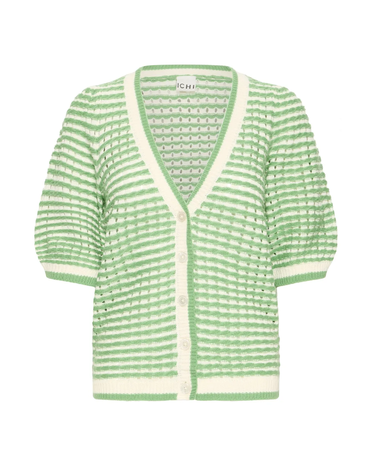 Specificaties: ICHI Gebreid vest ‘IHArdina’ crème / groen