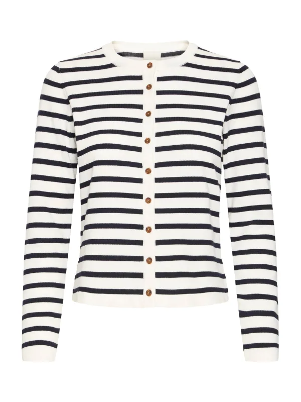 Design: Geribbelde kraag, Knop placket, Geribd ceintuurtje; Type sluiting: Knoopsluiting; Materiaal: Knitwear; Halstype: Ronde hals; Motief: Gestreept; Extra's: All-over patroon, Voelt zacht aan; Pasvorm: Normale pasvorm; Armlengte: Lange mouw; Lengte: Normale lengte