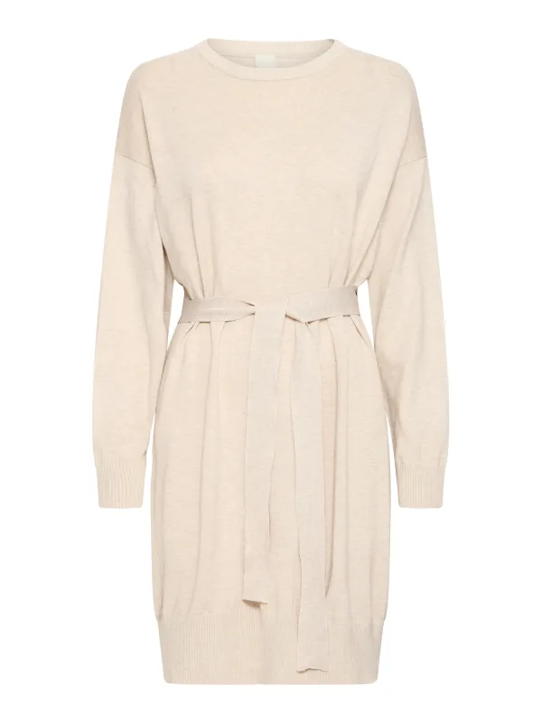ICHI Gebreide jurk ‘IHLULS’ lichtbeige