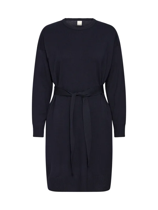 ICHI Gebreide jurk ‘IHLULS’ navy