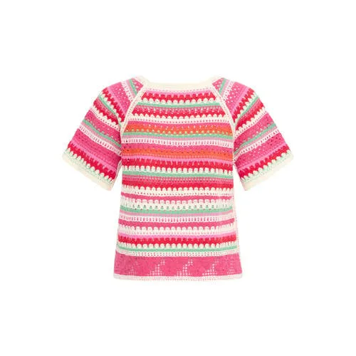 ICHI gestreepte top roze gehaakt Prijzen